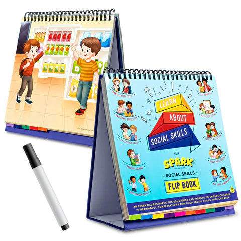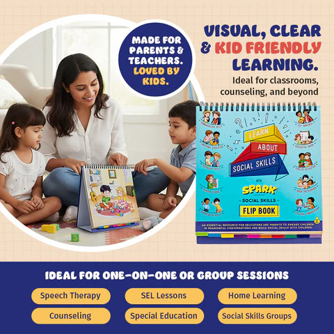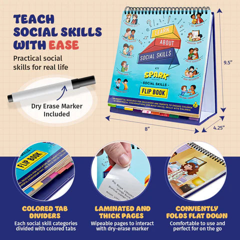 Whether used in therapy sessions, classrooms, or at home, the Spark Social Skills Flipbook provides structured yet flexible guidance to support children in developing confidence, empathy, and positive interaction skills.