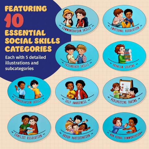 Comprehensive Coverage: Features 10 major social skill categories, each with 5 engaging illustrations that explore subtopics through clear visuals and guided discussion.