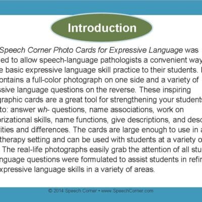 Speech Corner Photo Cards for Expressive Language