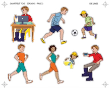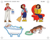 Several of the manipulatives from the original have been tweaked to add people to them. (Woman sits on the same chair, someone's taking a bath, dad's now at the desk, etc.)