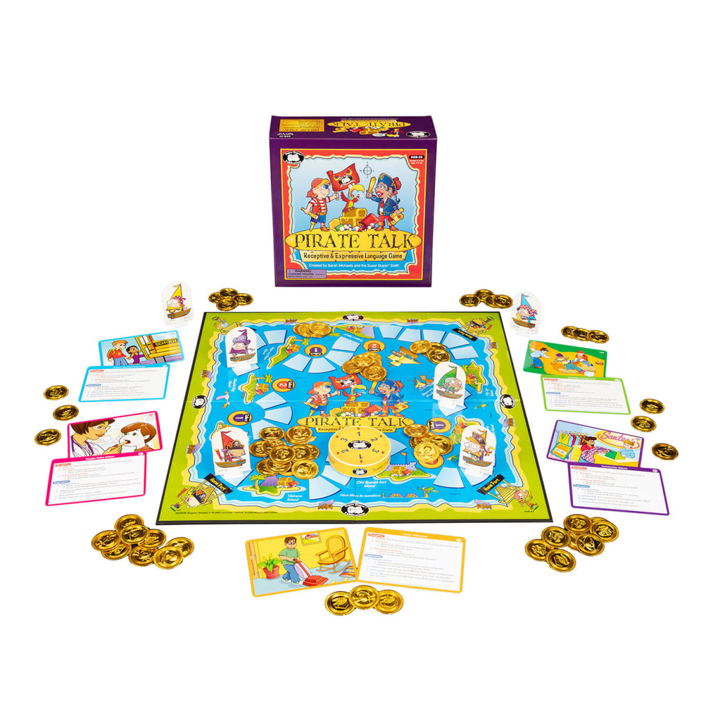 Pirate Talk is a receptive and expressive language game that targets 7 essential communication skills:
