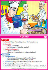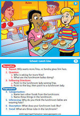 • 150 Receptive and Expressive Language Cards (4½" x 3½") (5 subjects, 30 cards each)