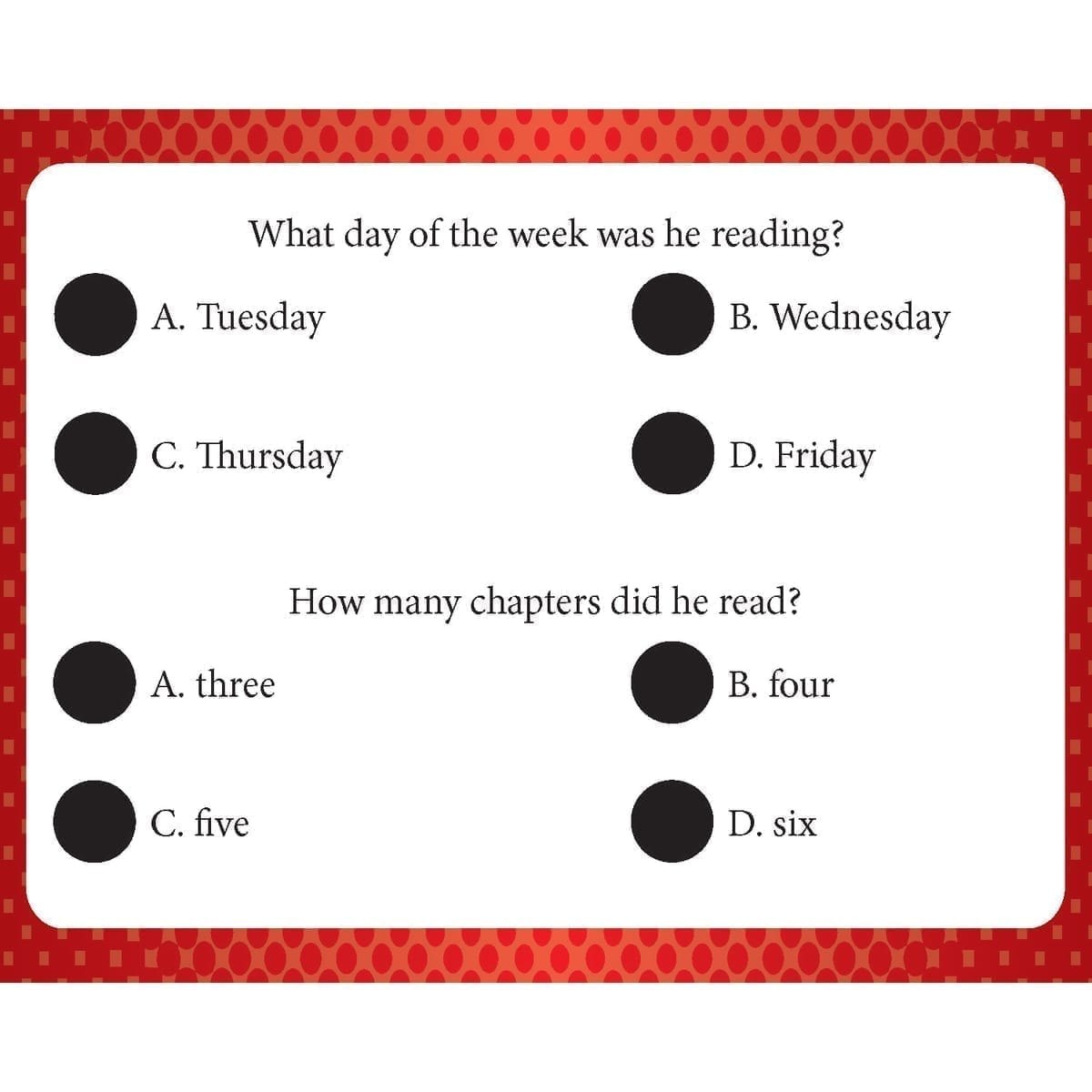 - Interactive Responses: Students press the Spot On! Pen to the answer dot on the card.