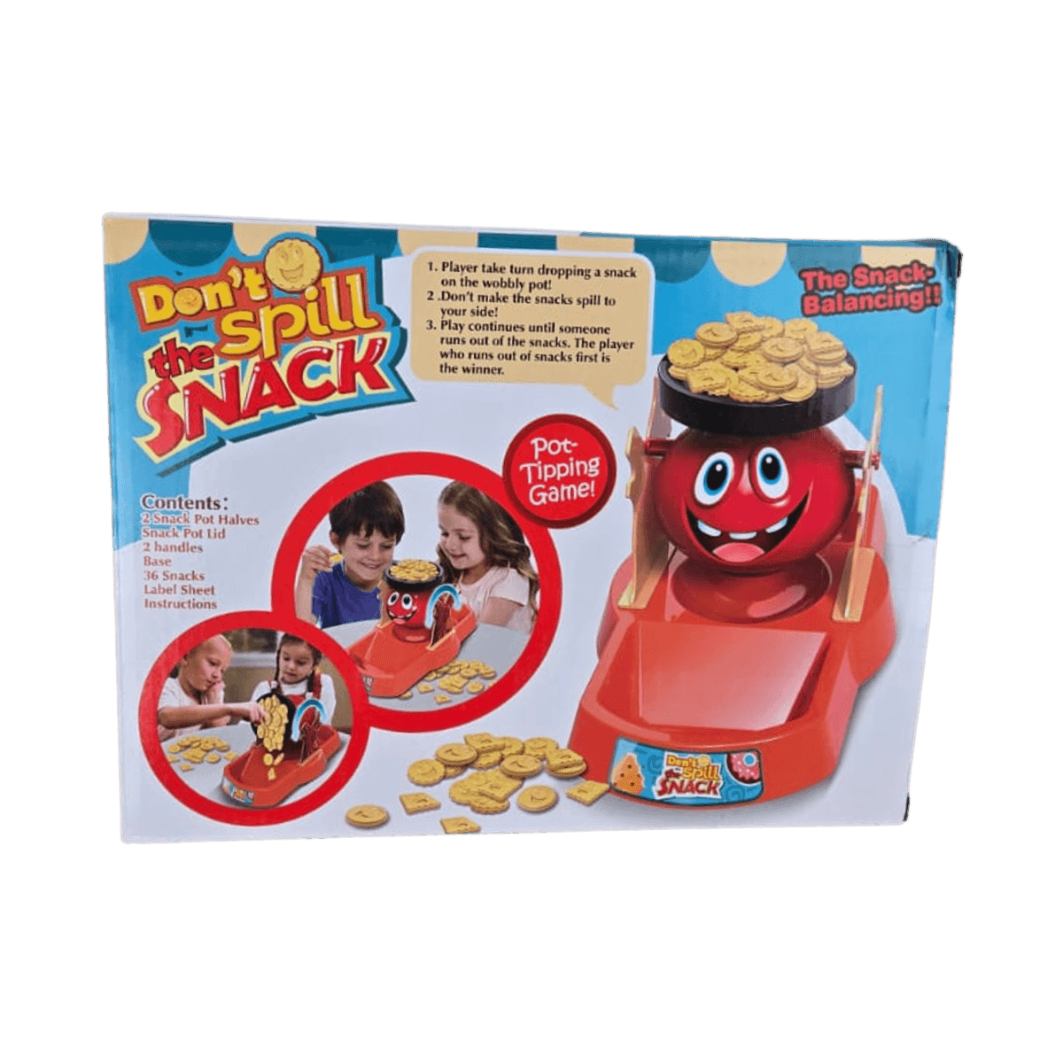 If the container tips and snacks spill, reset and start a new round!