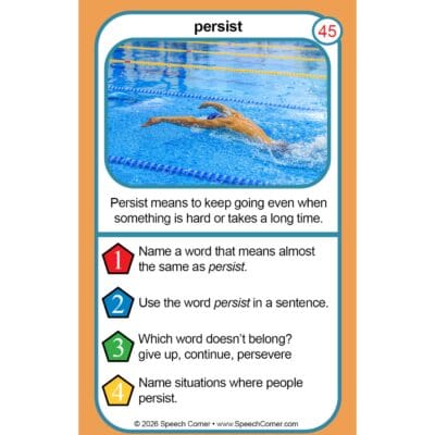 The Vocabulary Vault Double Dice Add-On Deck turns vocabulary acquisition into a mini-adventure. Designed for high engagement and deep processing, each card provides a multi-layered look at a single target word. By using a vivid photo and a “kid-friendly” definition as a starting point, this deck moves beyond simple memorization to help students truly “own” new words through four distinct, interactive pathways.